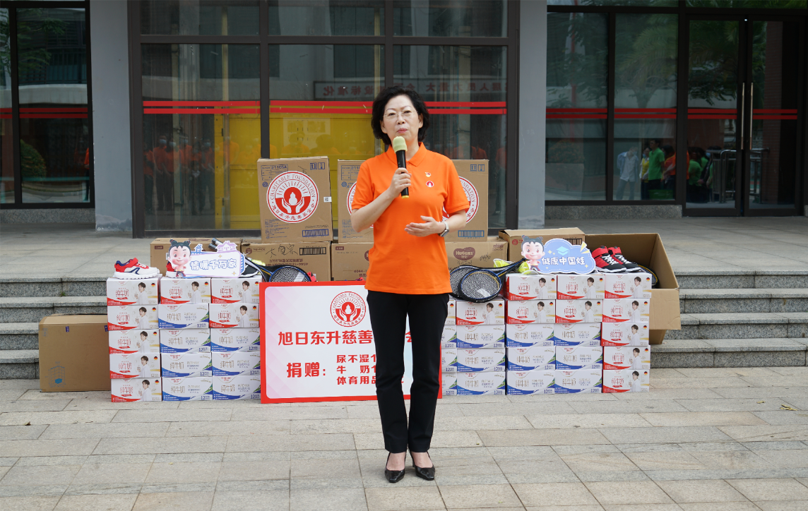 紧接着,海口市社会福利院院长唐凤英致辞。她首先感谢葫芦娃药业集团、旭日东升慈善基金会7年来,对海口市社会福利院的持续关注和无私帮助。她特别提到,2022年由葫芦娃药业集团捐资建设的“爱·护”项目医护隔离观察区,帮助福利院的孩子们渡过了疫情防控的难关。今年,熟悉的葫芦娃人又来到了福利院陪伴孩子们,给予了这里的小朋友们爱的力量。